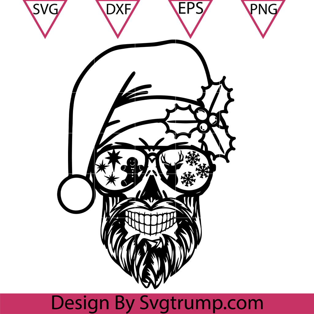 Bearded Skull Christmas Svg, Dad Christmas Skull Svg, Christmas Skull Svg