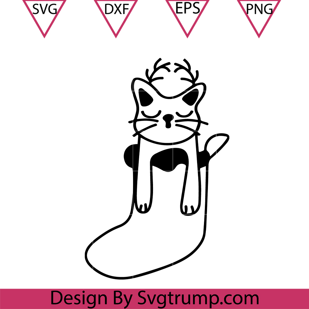 Christmas Baby Cat Socks Svg, Socks Meowy Christmas Svg, Cat Lover Gift Black Svg