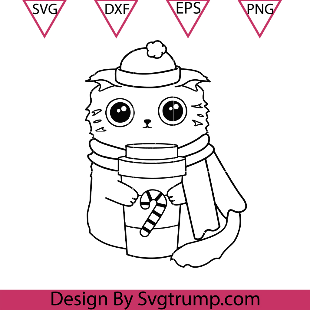 Christmas Candy Cane Latte Cat Svg, Black Cat With Peppermint Coffee Svg