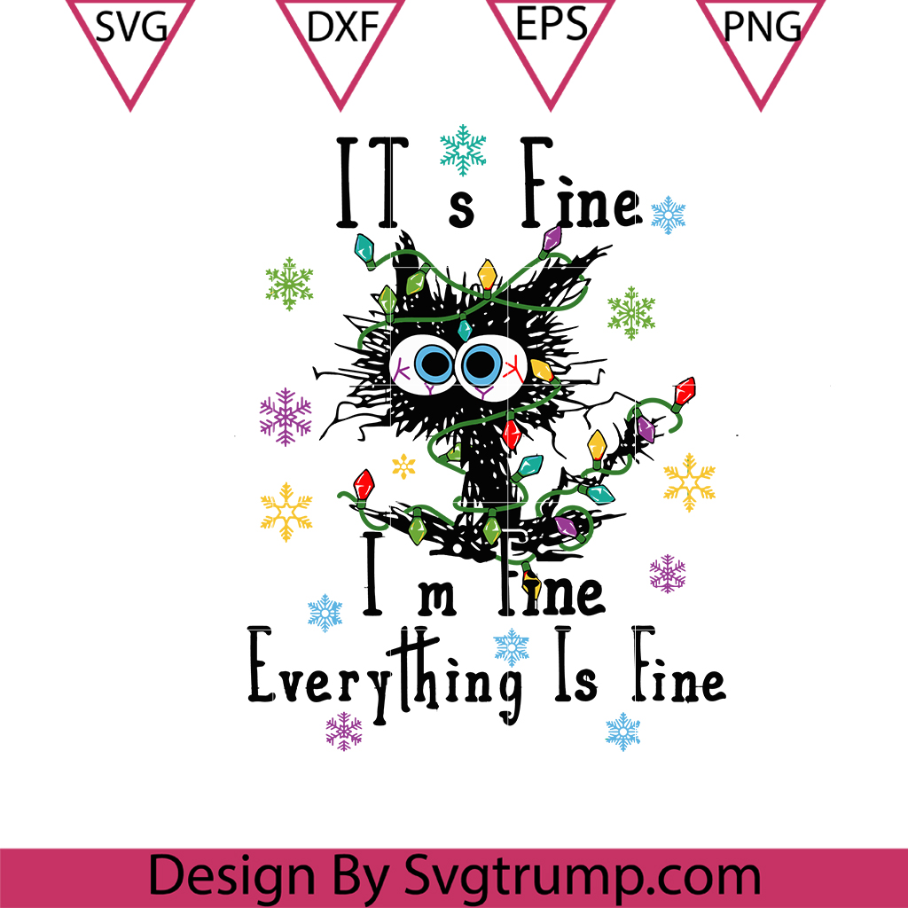 Christmas It S Fine Im Fine Everything Is Fine Svg, Cat Black Christmas Lights Svg