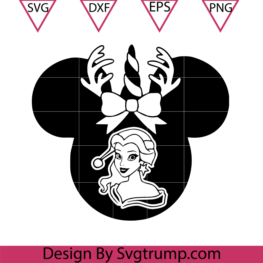 Christmas Princess Belle Ears Svg, Belle Princess Ears Mouse Svg