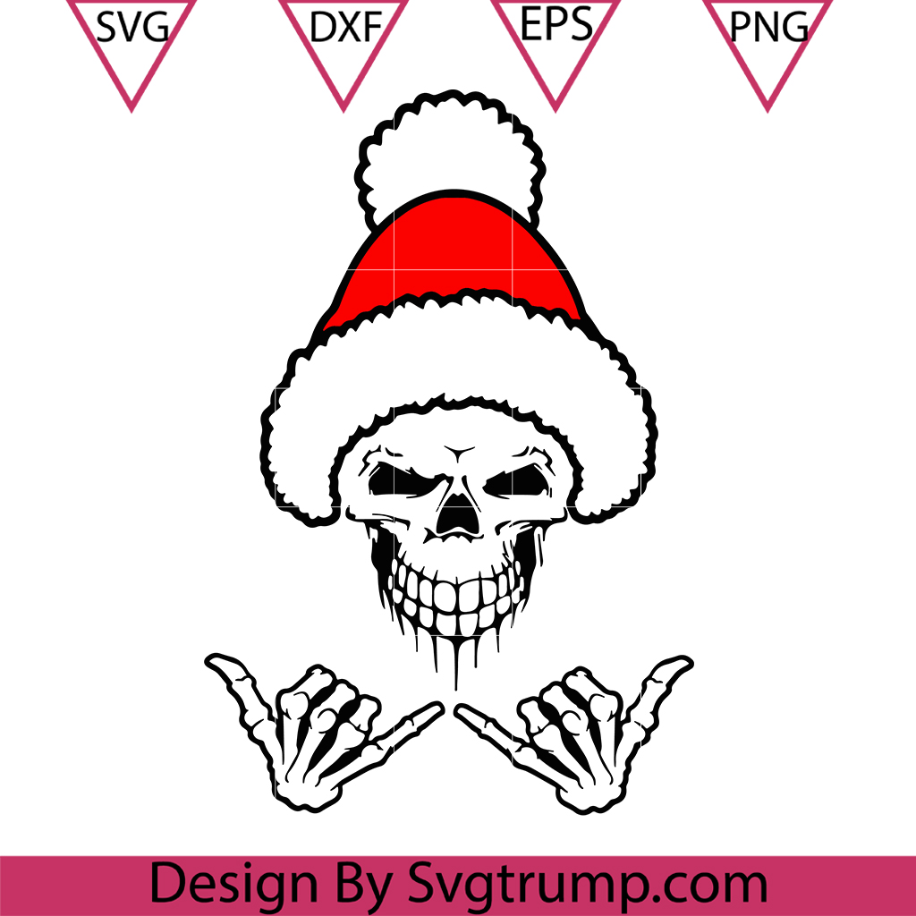 Christmas Skull Fingers Svg, Skull Santa Svg, Skeleton Santa Hat Svg