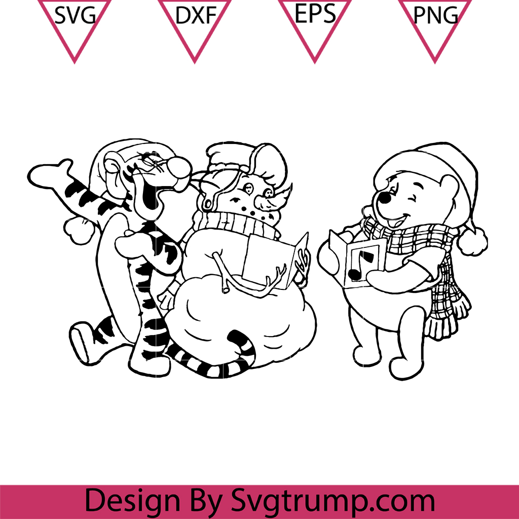 Disney Christmas Pooh Tigger And Snowman Svg, Pooh Christmas Holding books Svg
