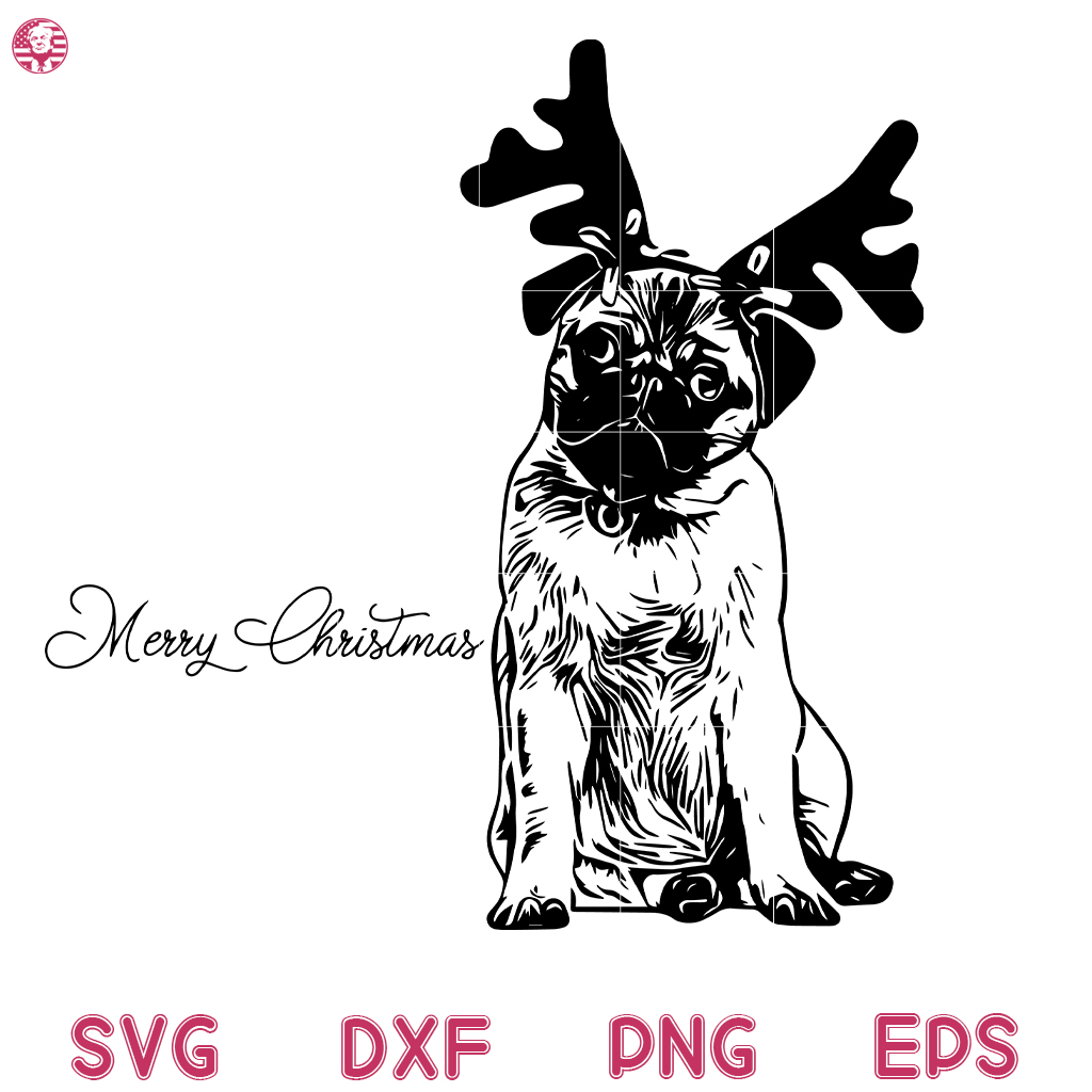 Dog Pug Christmas Svg, Merry Christmas Deer Pug Ears Svg, Dog Pug Hat Santa SVG