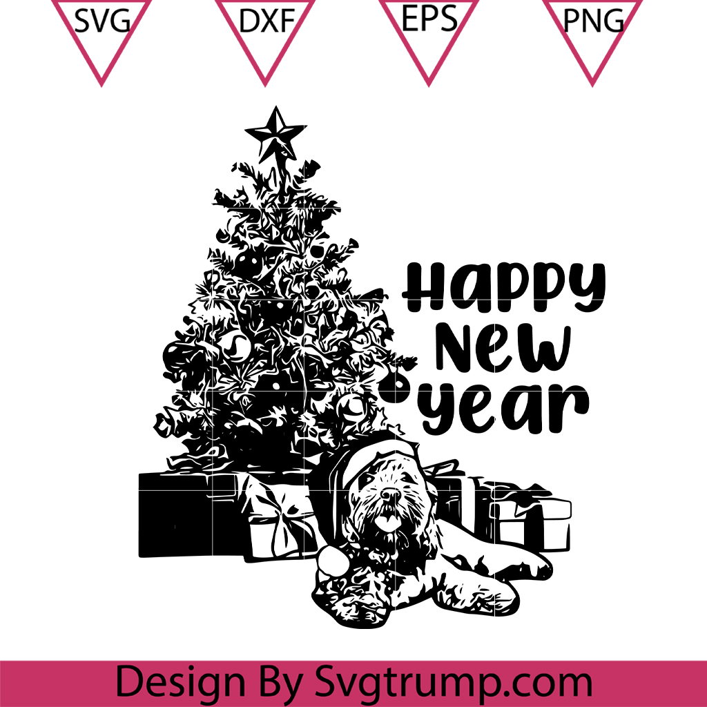 Dogg Happy New Year Christmas Tree Svg, Happy New Year Dog Instant Digital Svg