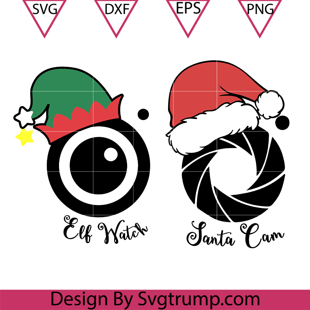 Elf watch Christmas Eye Svg, Santa Cam Svg, Camera Eye Svg, Camera With Santa Hat Svg