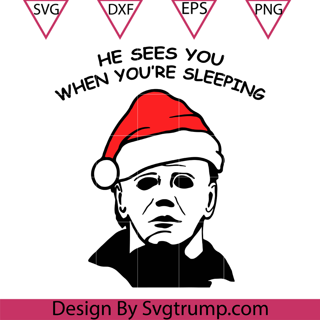 He Sees You Michael Myers Santa Hat Svg, Christmas Michael Myers Svg