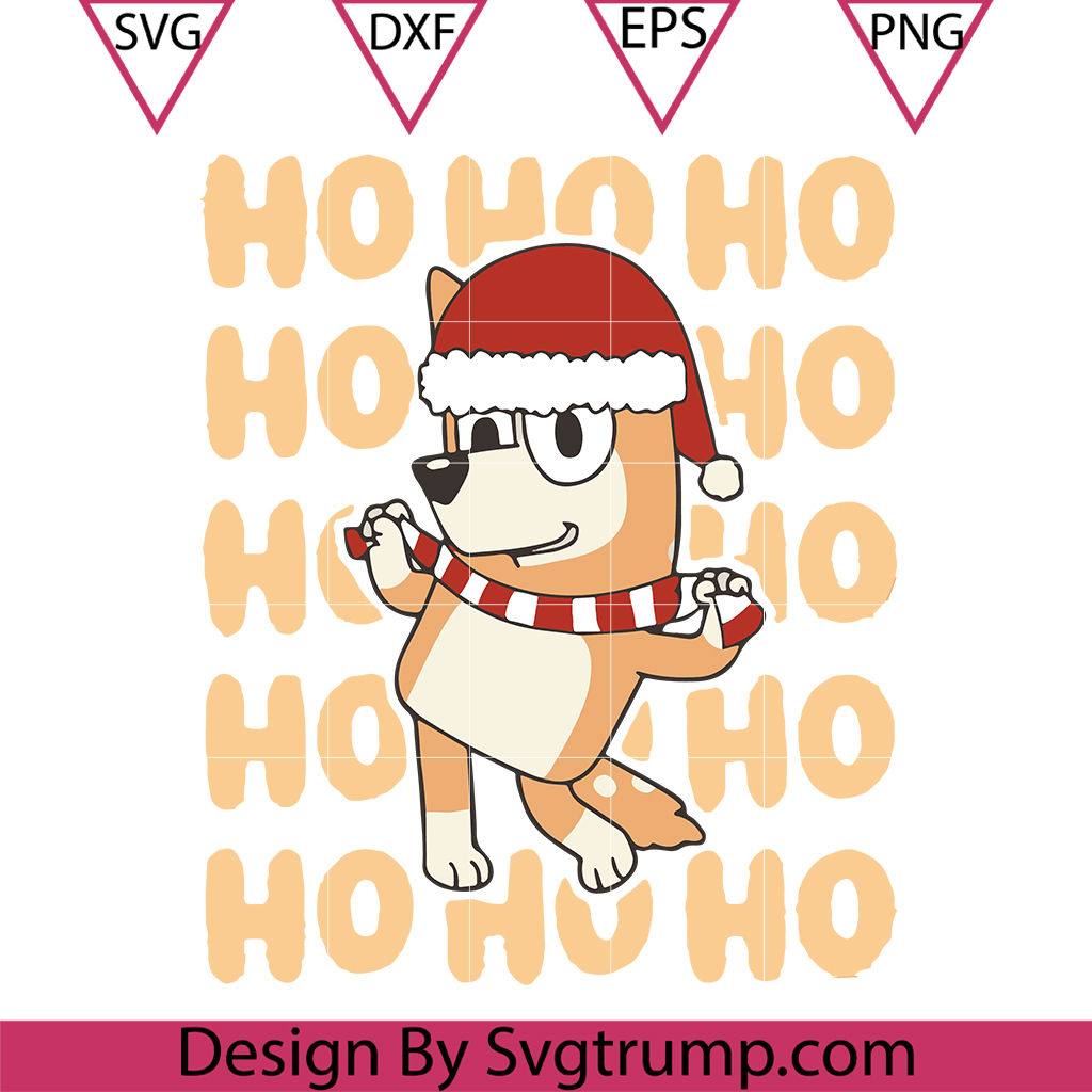 Ho Ho Ho Bluey Christmas Heeler Svg, Bluey Bingo Christmas Hat Svg