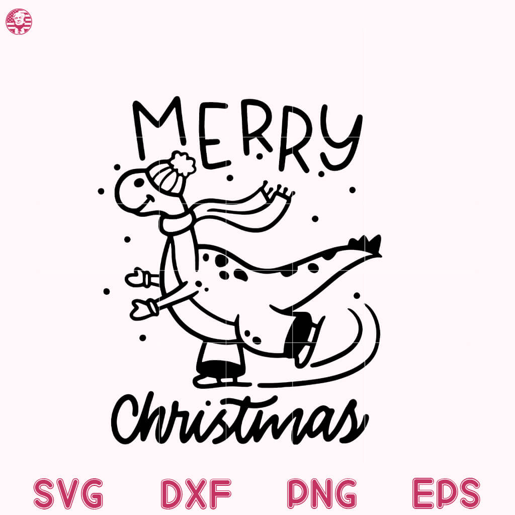 Merry Christmas Ice Skating Cute Dinosaur Svg, Dinosaur Rawr Christmas Kids Svg