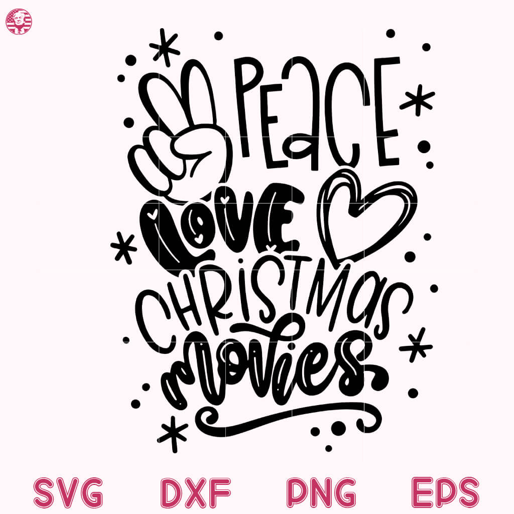 Peace Love Christmas Movies Svg, Christmas Quote Hand Drawn Svg