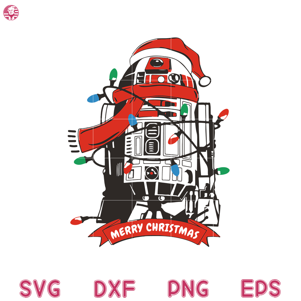 R2D2 Christmas Lights Svg, R2D2 Lights Hat Santa Svg