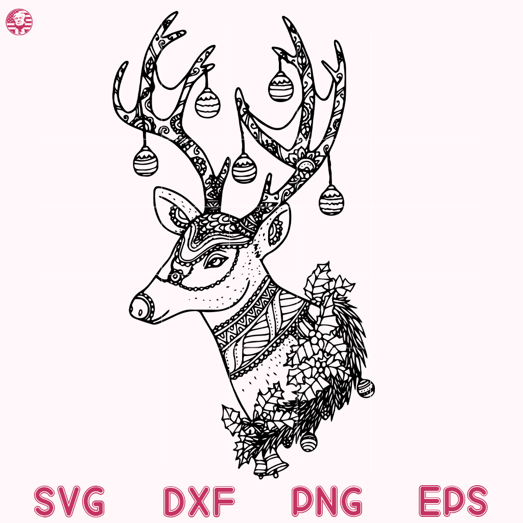 Reindeer Zentangle Svg, Reindeer With Mandala, Christmas Wreath