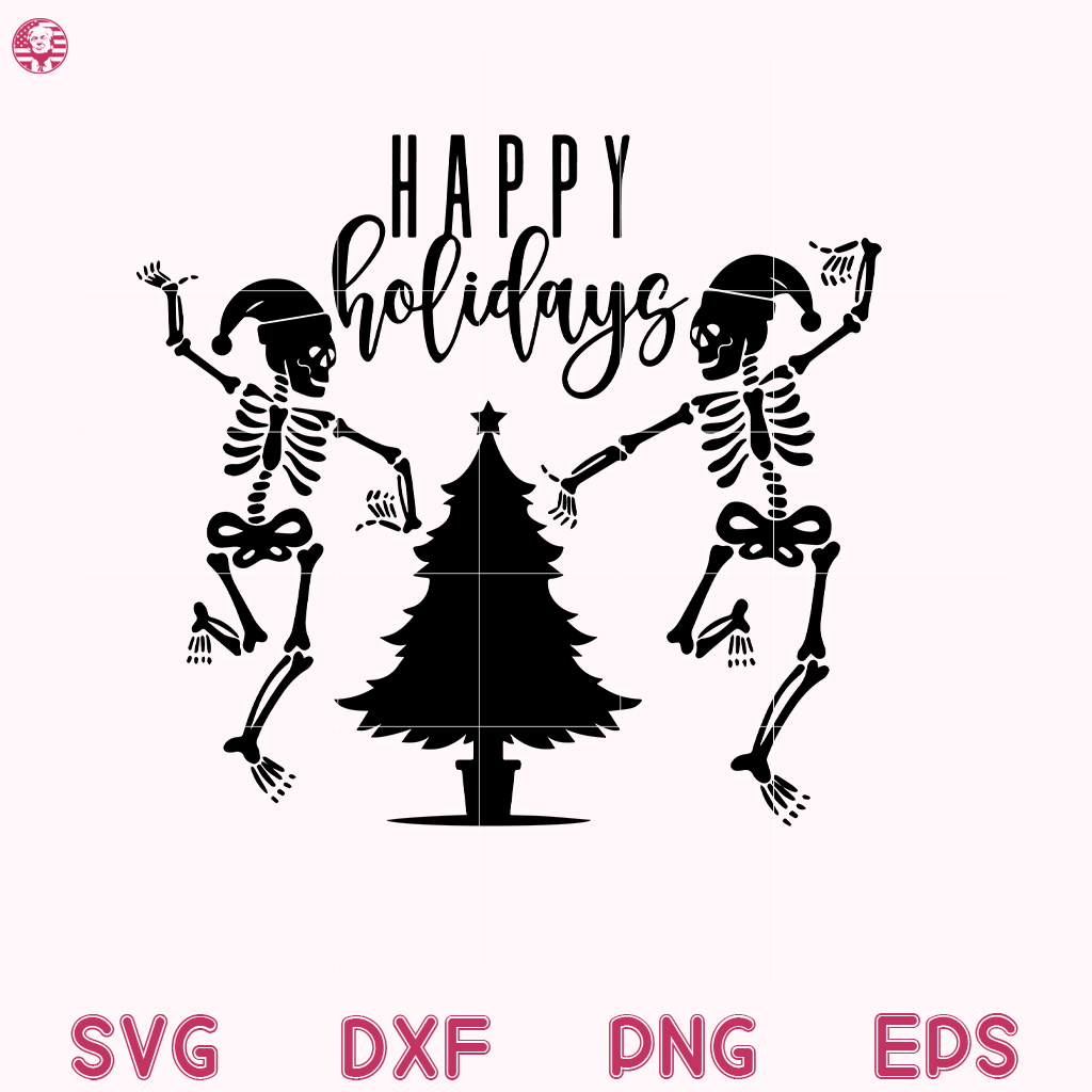 Skeleton Happy Holidays Christmas Tree, Skeleton Christmas Dancing