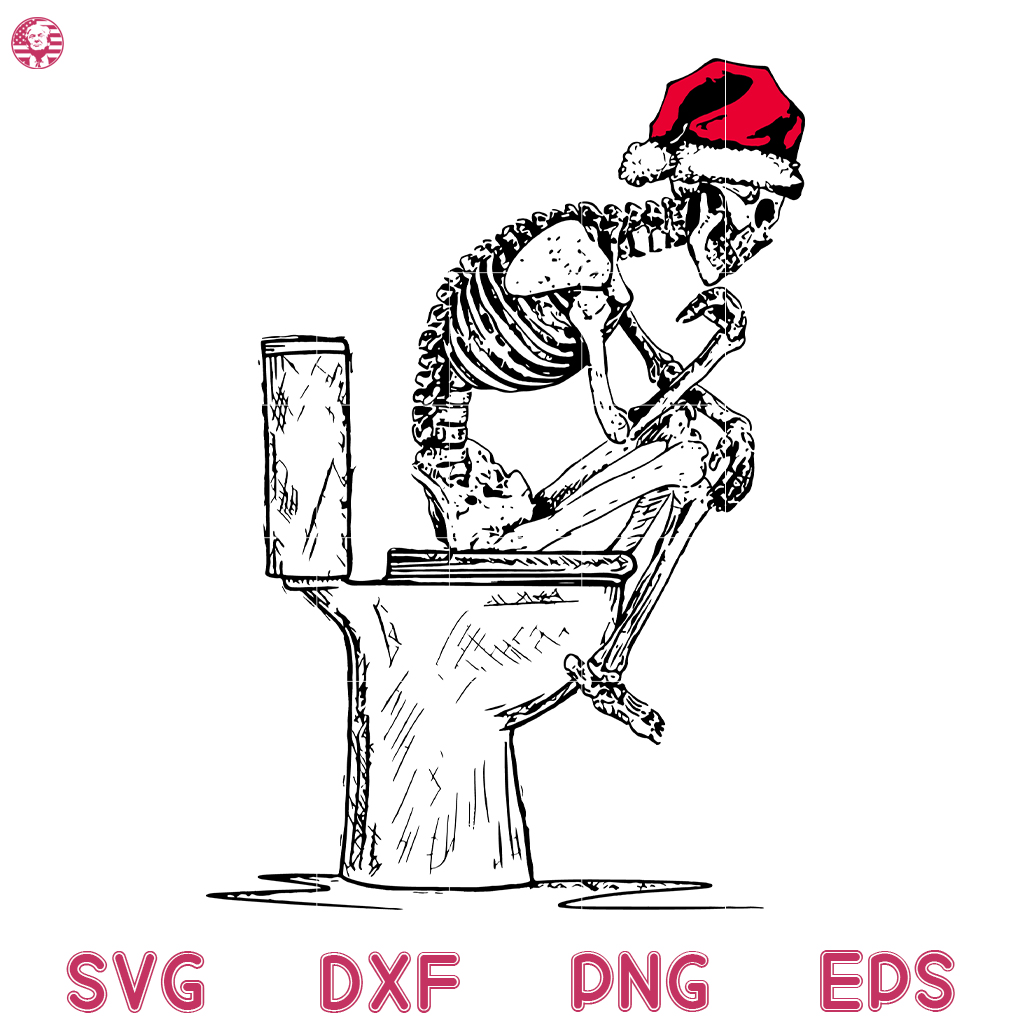 Skellington Toilet Christmas Svg, Jack With Christmas Hat Svg, Funny Christmas Svg