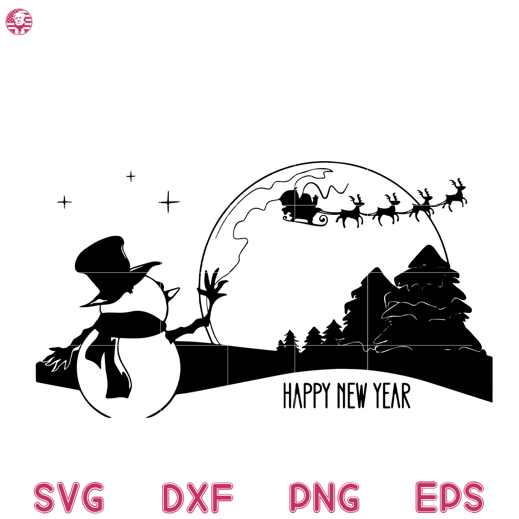 Snowman Happy New Year Svg, Christmas Snowman Greets Deers Svg